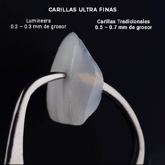Las carillas Lumineers® son láminas ultrafinas de porcelana que se adhieren a la superficie frontal de los dientes. Son digitalmente diseñadas con el mínimo grosor posible y fabricadas para imitar la anatomía translúcida de los dientes naturales.